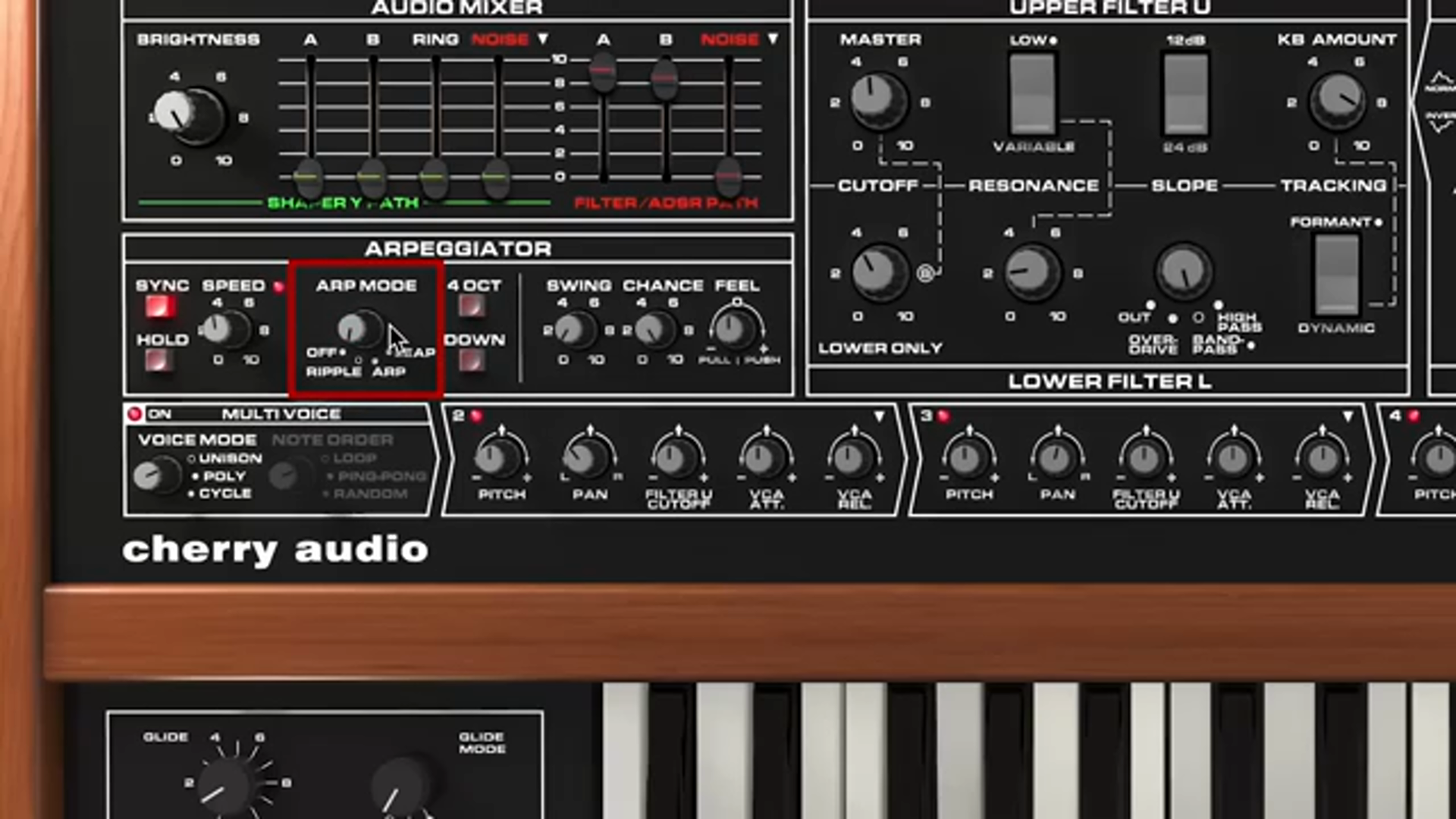 The Spirit’s arpeggiator is a marvel—an engine of rhythm and possibility, a poetic mechanism through which sound can express itself with fluidity and charm. Tim guides us through its historical modes, each a unique cadential phrase in the symphony of the Spirit. With settings like Ripple and Leap, the arpeggiator takes on the role of the conductor, dictating the flow and intensity of the performance. Cherry Audio’s enhancements are subtle yet profound, adding layers of unpredictability and human-like variations with functionalities such as swing and feel. The arpeggiator thus becomes a living organism within the Spirit, a pulse that connects each note in a delicate dance, crafting melodies that waver between the ethereal and the tangible, acting as both storyteller and listener.